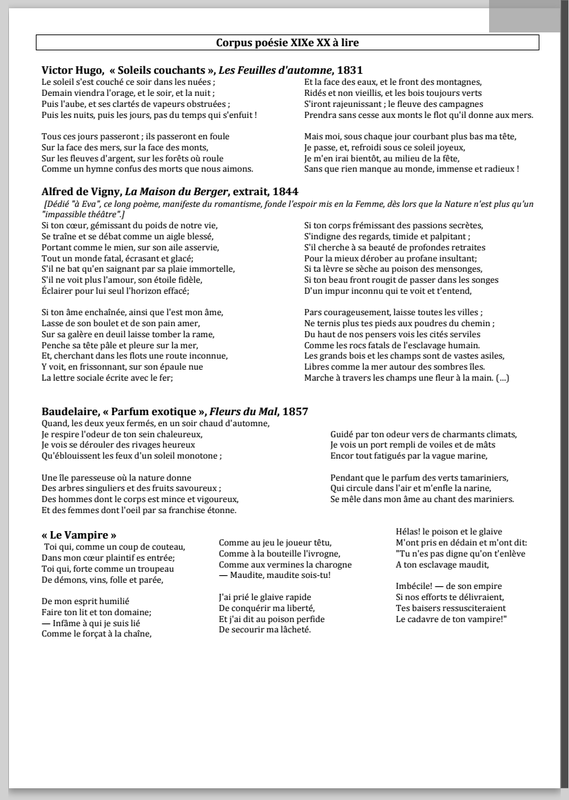 Corpus poésie XIXe à lire